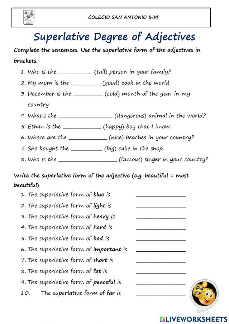 A Worksheet With The Words Superflive Degree Of Adjecttives