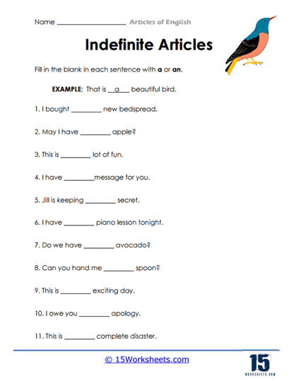 Articles Exercises Free Printable Articles ESL Worksheets