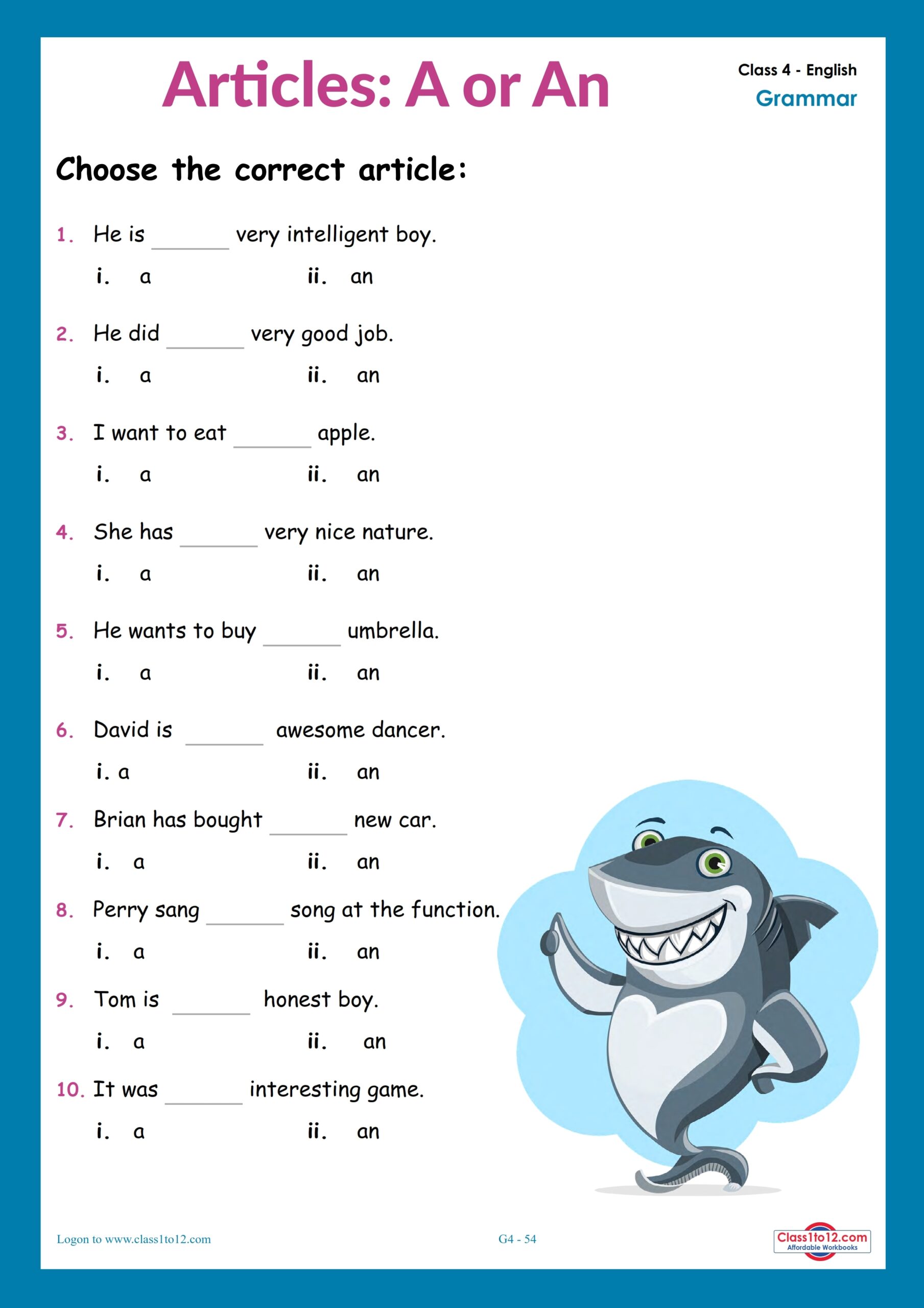 Articles Worksheet For Grade 4 With Answers Pdf Pdf Infoupdate