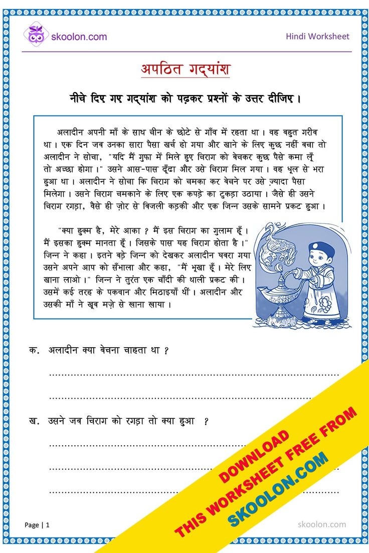 Apathit Gadyansh For Class 5 Hindi Worksheet For Class 5 Unseen