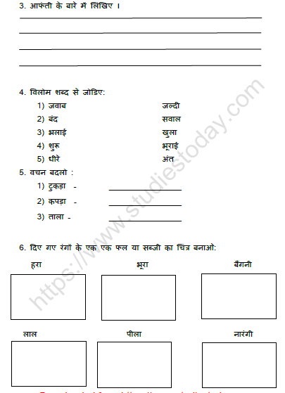 Class 3 Hindi Worksheet