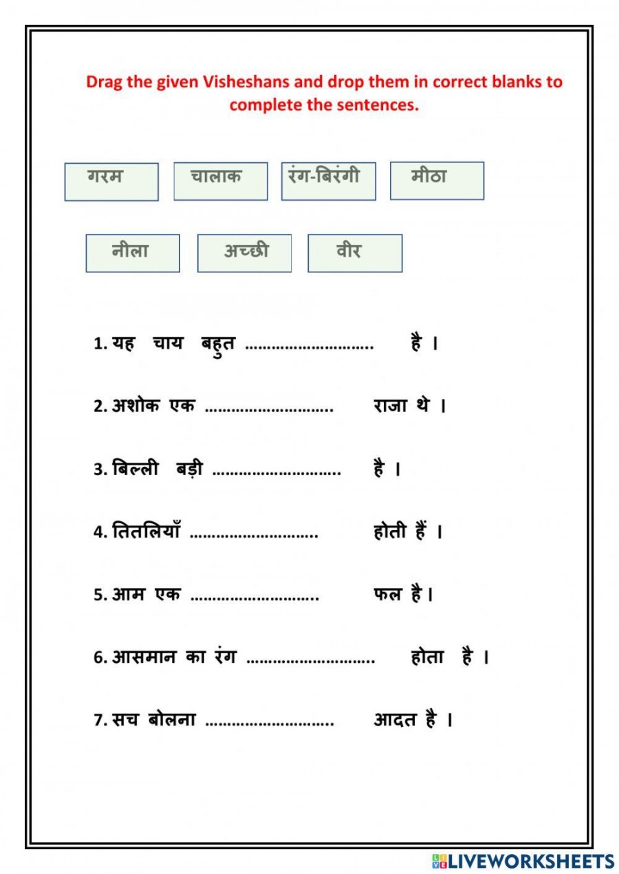 Hindi Visheshan Worksheet Pdf Printable PDF Template