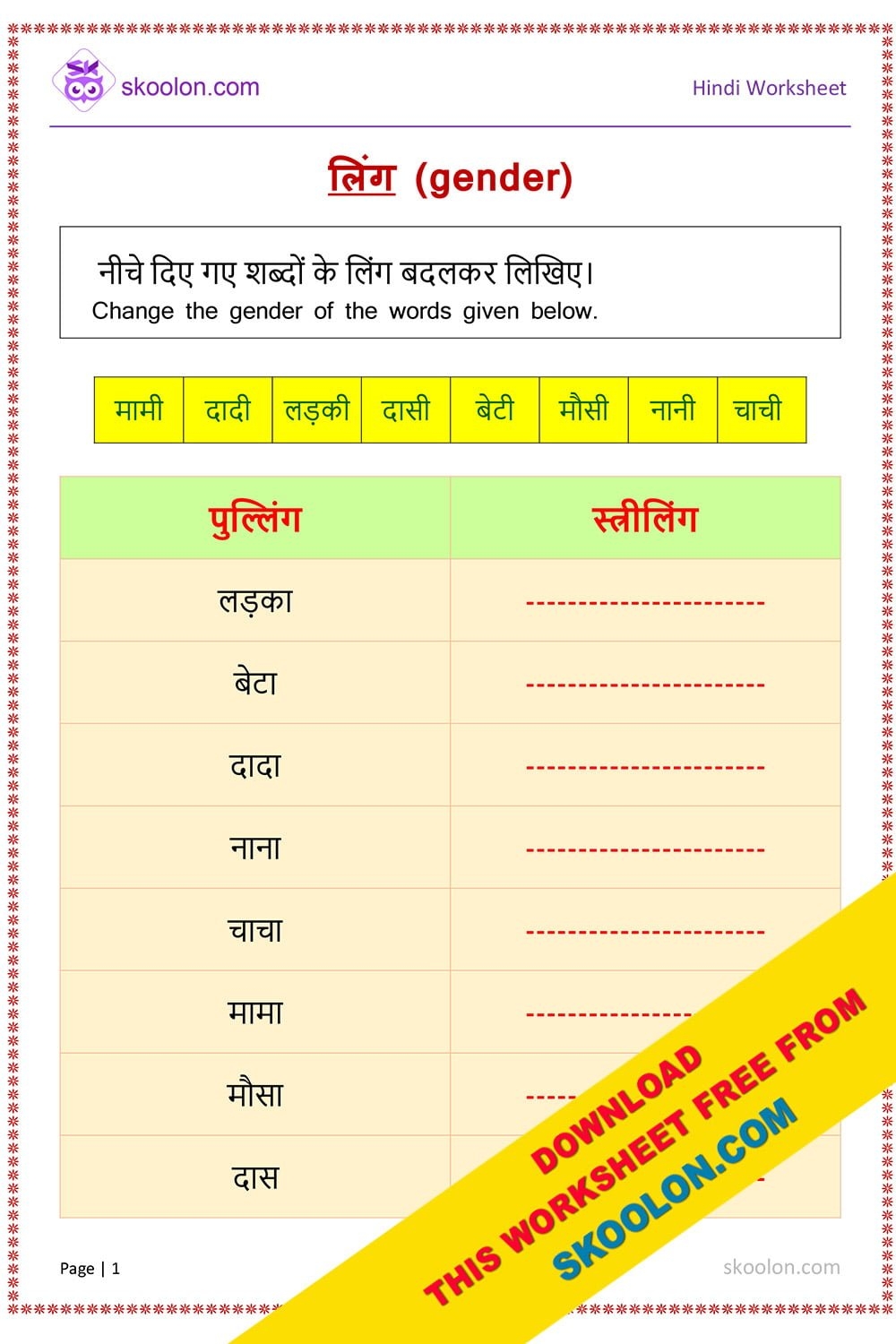 Hindi Grammar Ling Worksheet 5 Skoolon