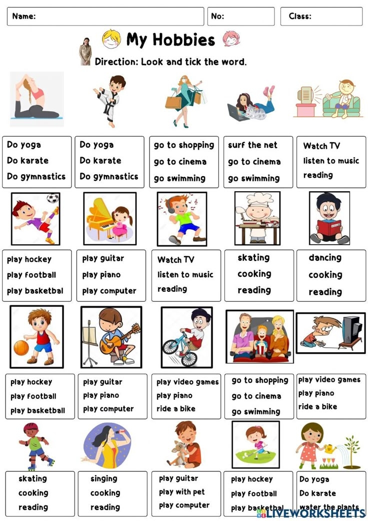 Hobbies Online Exercise For 3 English Activities For Kids English