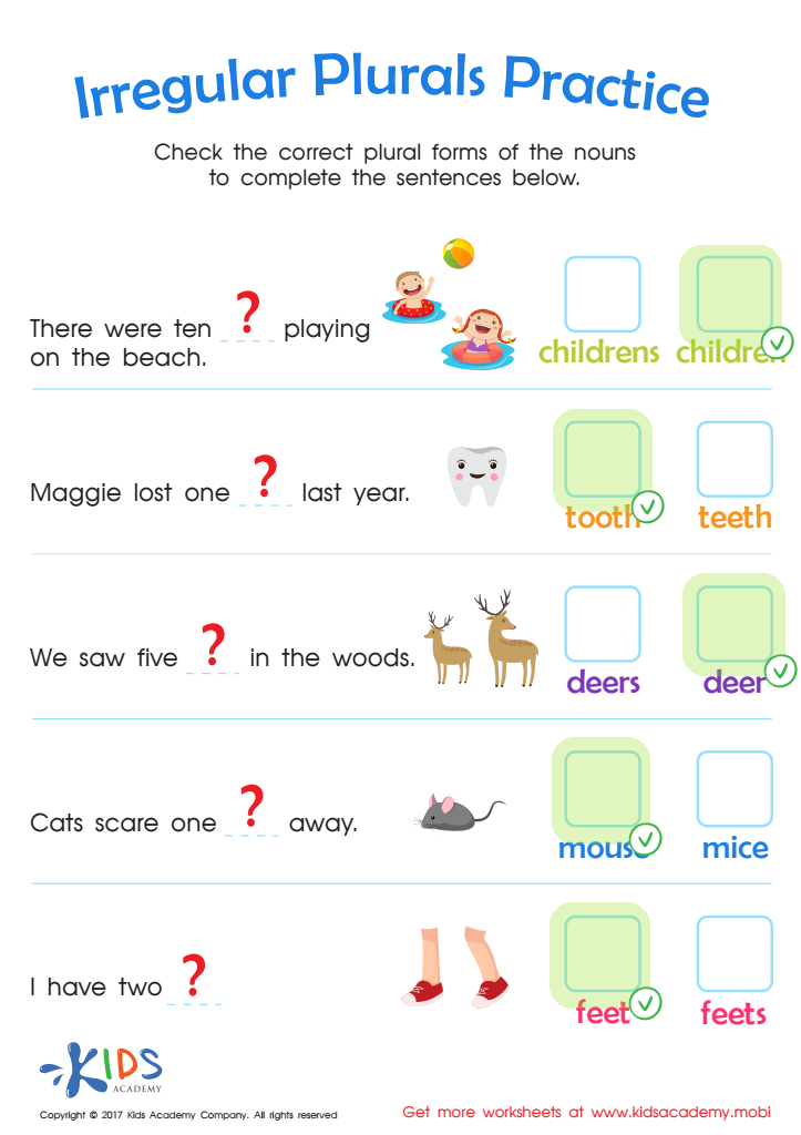 Another common activity found on these worksheets is rewriting sentences with the correct irregular plural noun. This helps students practice using irregular plurals in context and ensures they understand how to apply the correct form of the noun in different situations.