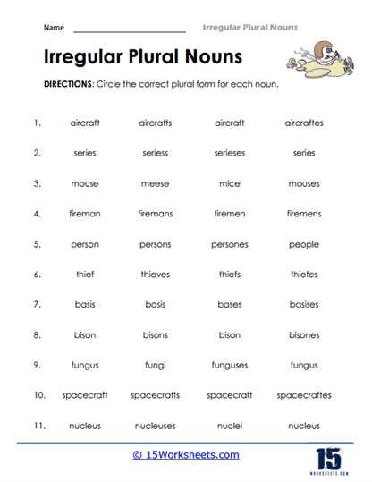 Irregular Plural Nouns Worksheet