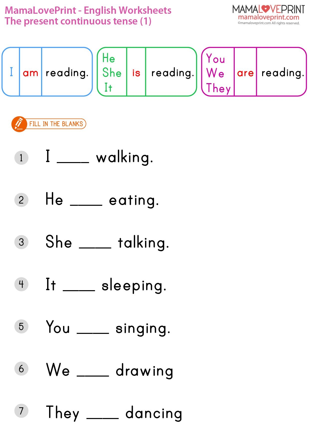 MamaLovePrint Grade 1 English Worksheets Basic Grammar Present