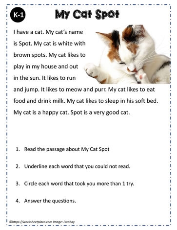 Reading Comprehension K 1 Cats WorksheetsReading Comprehension K 1 Cats Worksheets
