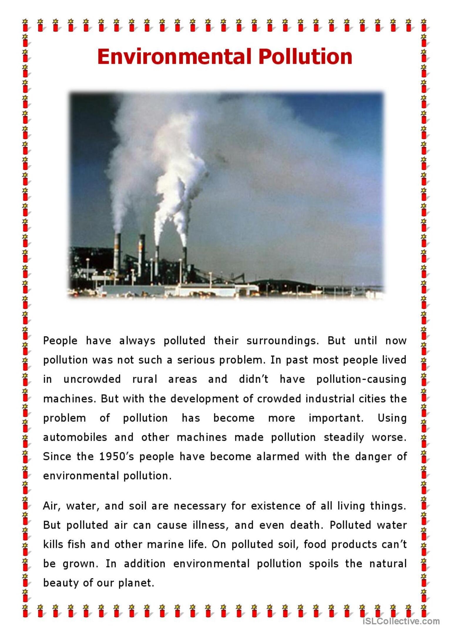Environmental Pollution Reading For English ESL Worksheets Pdf DocEnvironmental Pollution Reading For English ESL Worksheets Pdf Doc