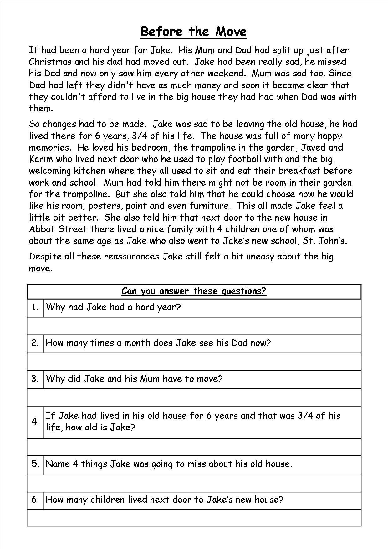 Reading Comprehension Questions Year 6 Reading Comprehension WorksheetsReading Comprehension Questions Year 6 Reading Comprehension Worksheets