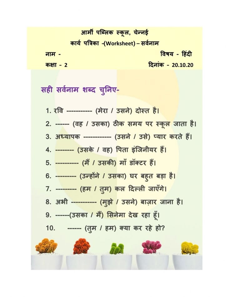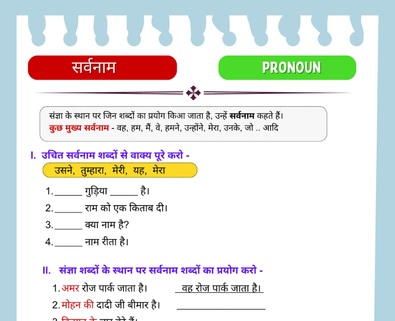 Class 4 Sarvanaam Worksheet Sarvanam Worksheet In Hindi Worksheet