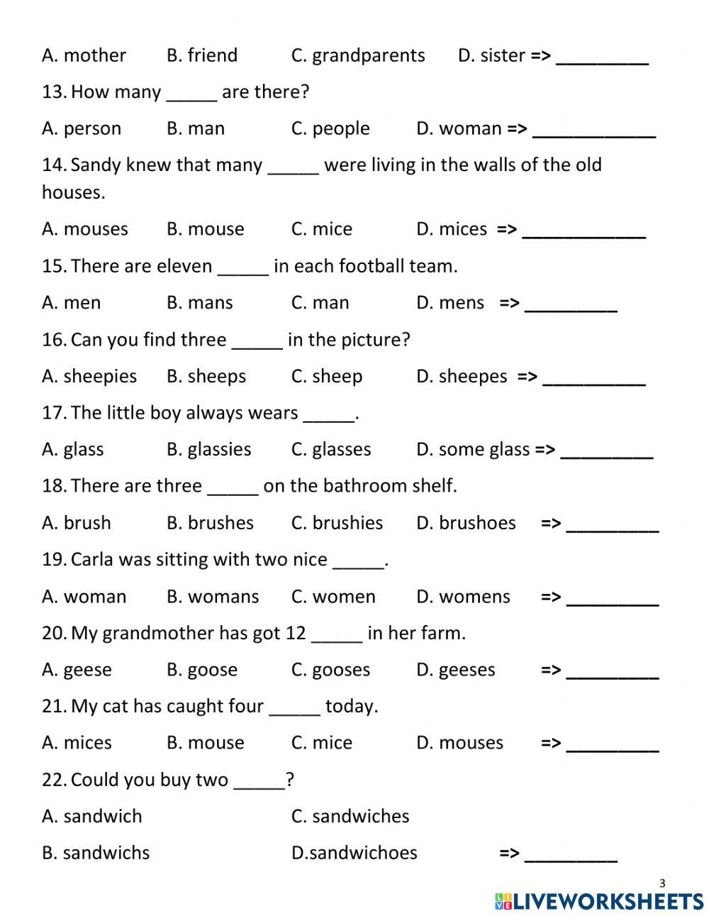 Singular And Plural Nouns Worksheet