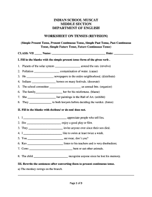 With a tense worksheet for class 7, students can practice identifying and using present, past, and future tenses in sentences. These worksheets often include fill-in-the-blank exercises, sentence correction activities, and other engaging tasks to help students grasp the concept of verb tenses.