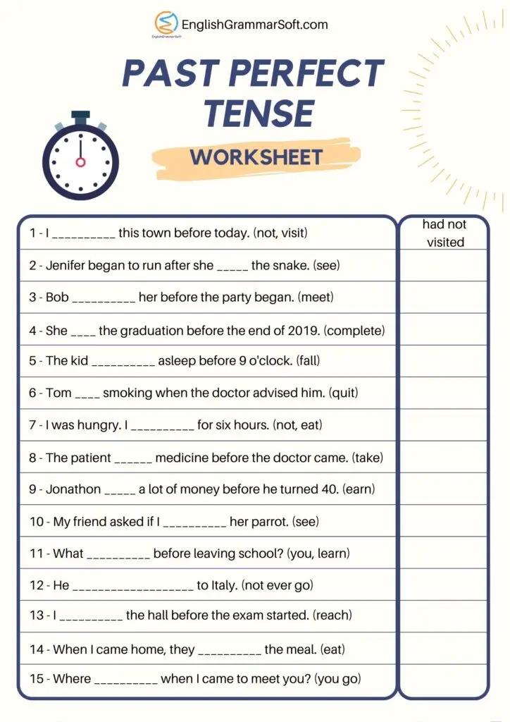 Worksheet For Past Perfect Tense With Answers EnglishGrammarSoft
