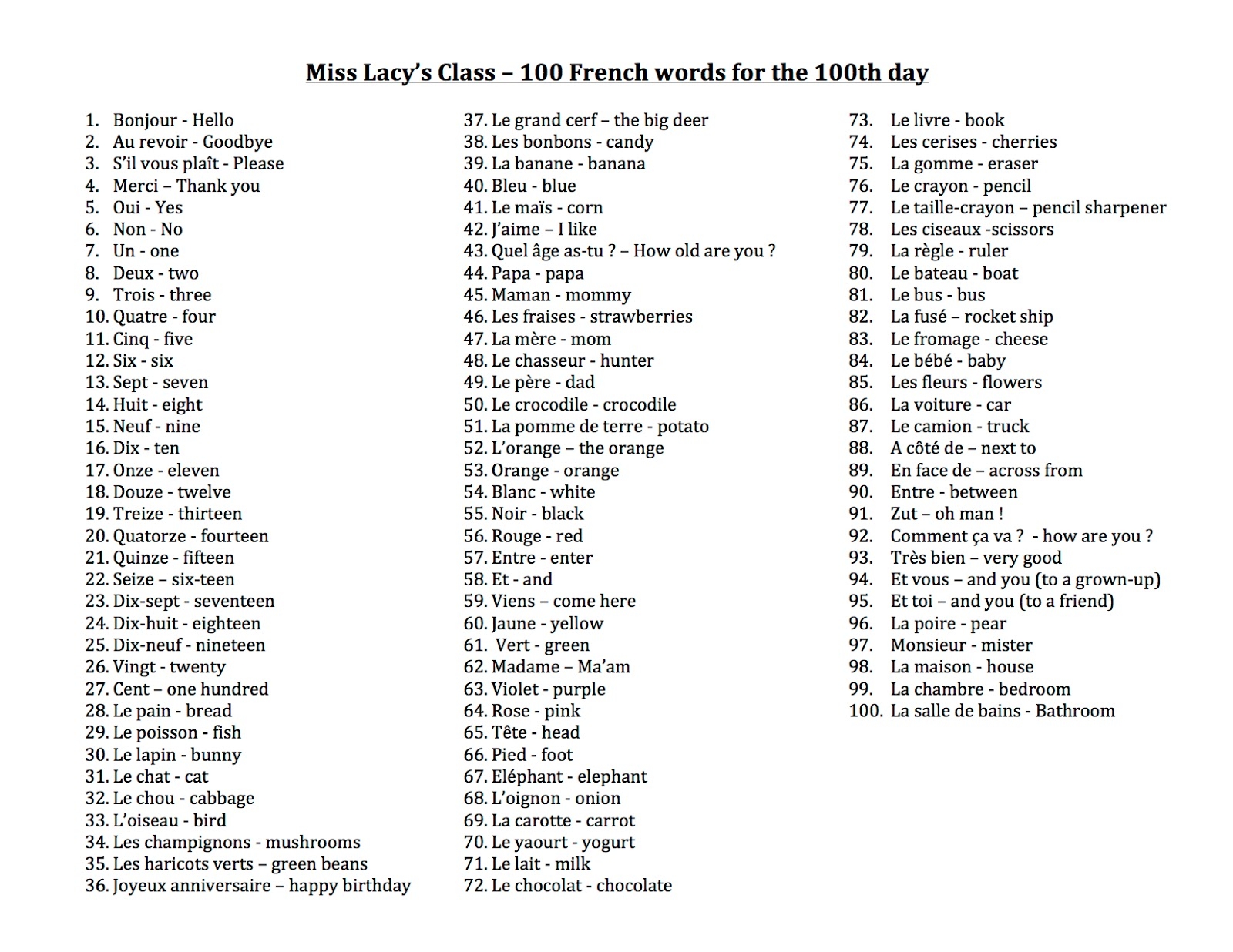 Bryn Mawr Class Of 2028 Blog French 100th Day 100 French Words