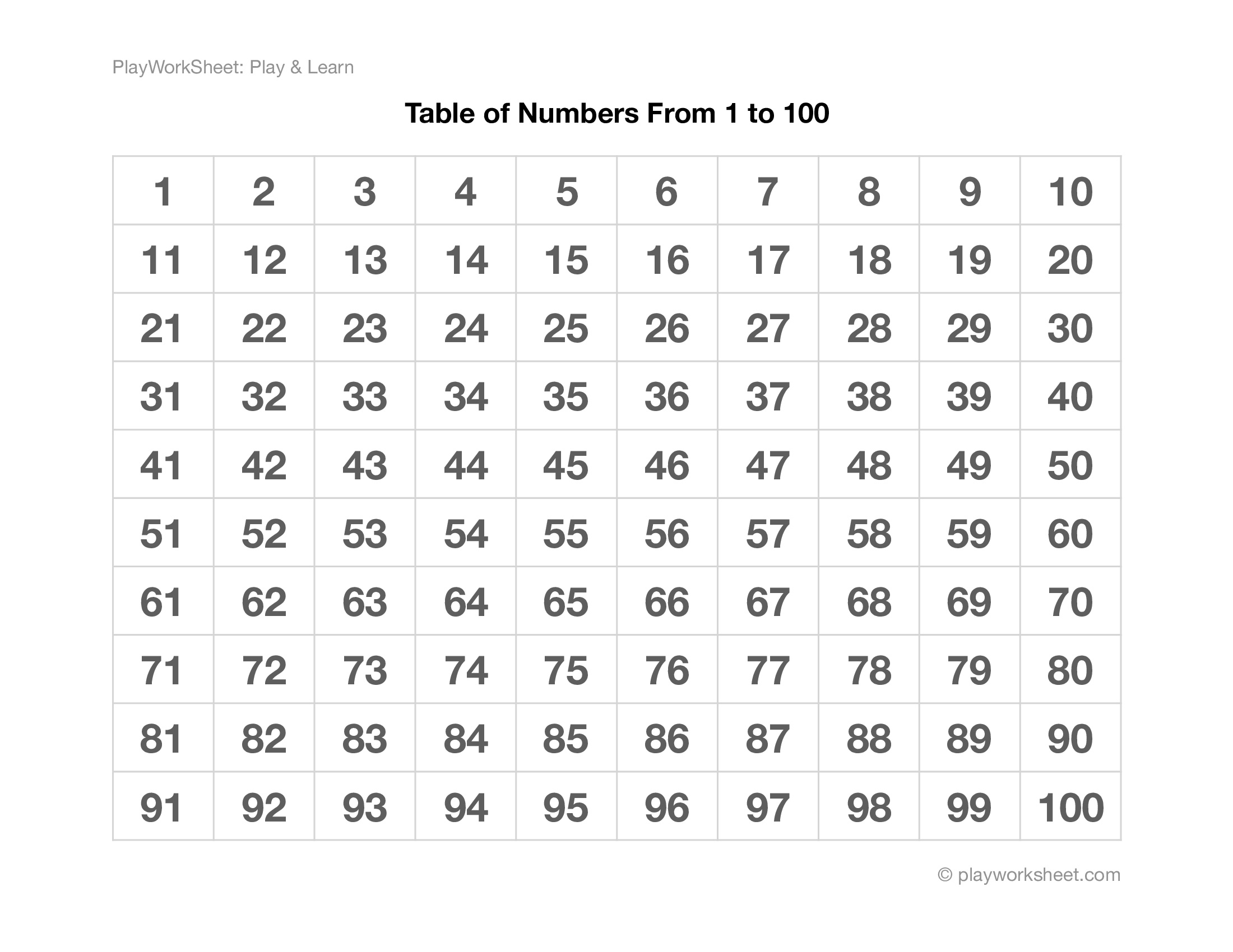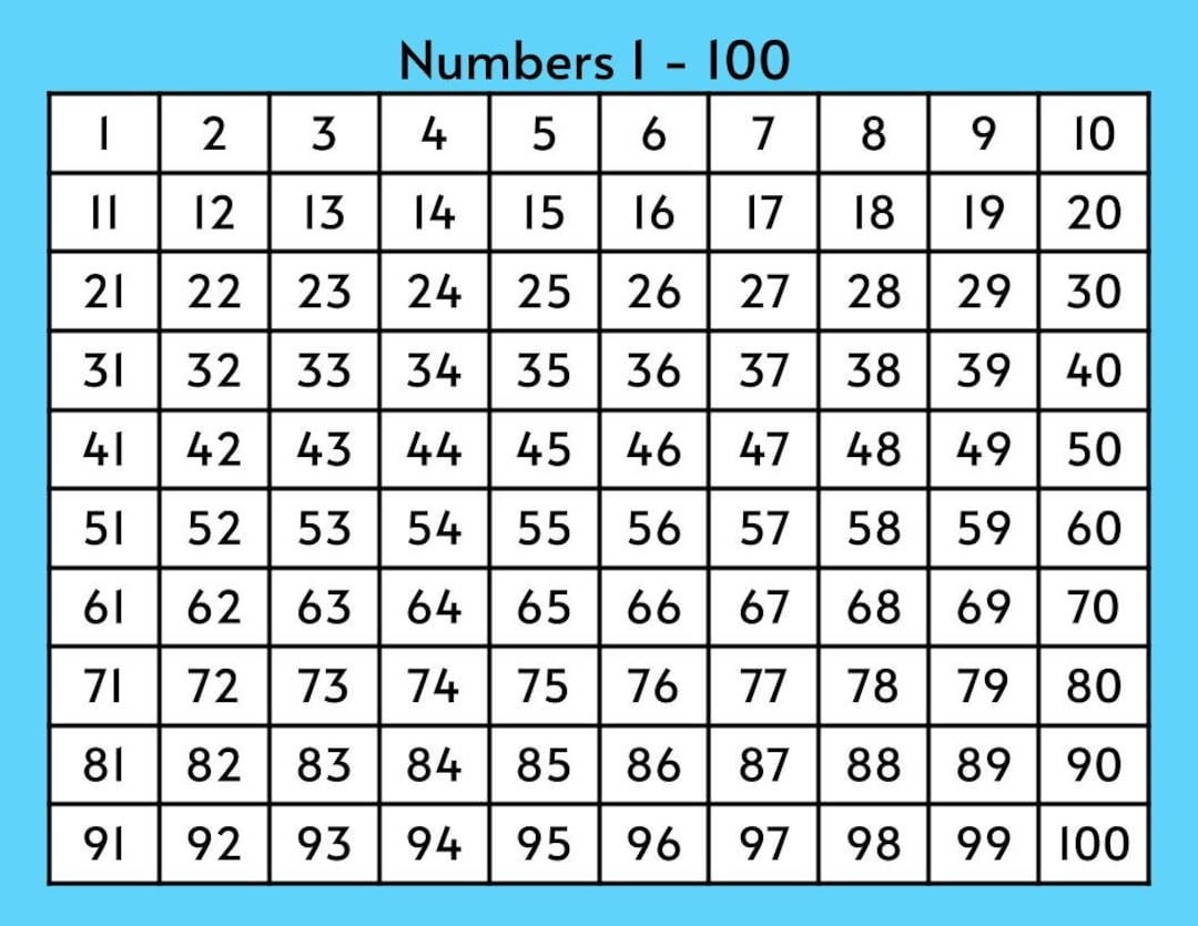 Number Chart 1 To 100 100 Number Chart Printable In Colors Black And