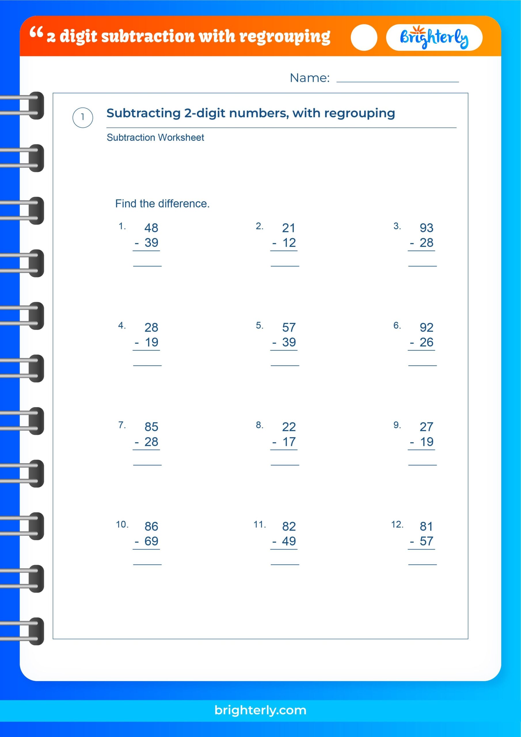 2 Digit Subtraction With Regrouping – Printable Worksheets: A Smart Tool for Learning at Home.