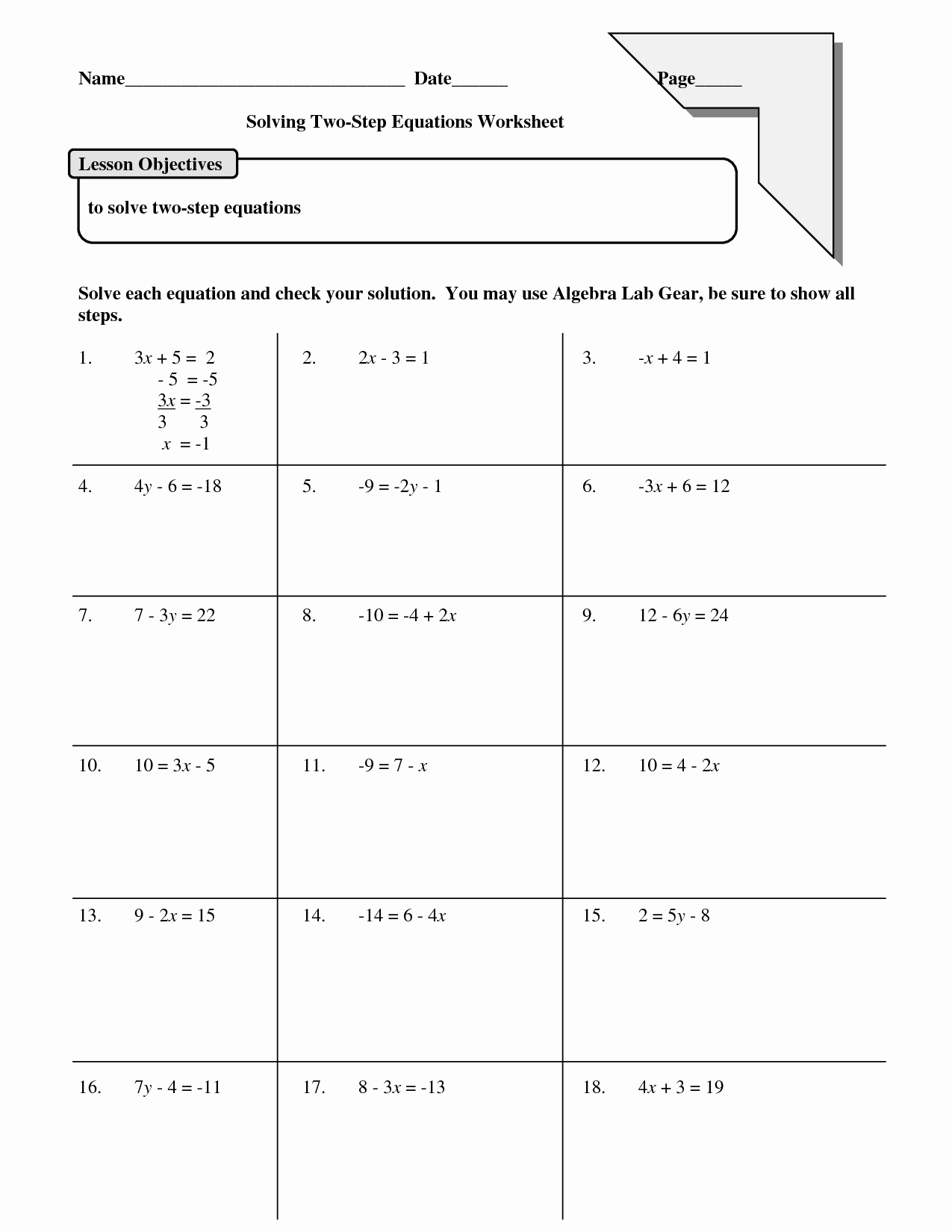 2 Step Equations Worksheet