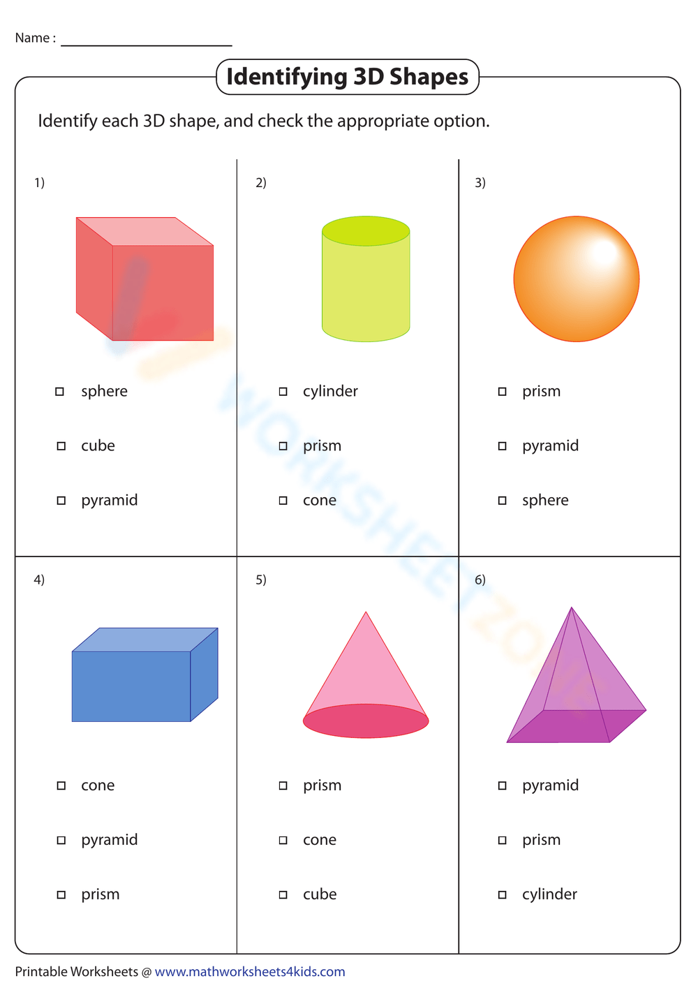 3D Shapes Worksheet