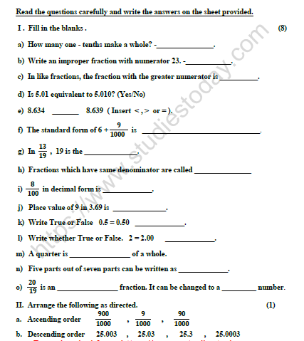 4 Class Maths Worksheet