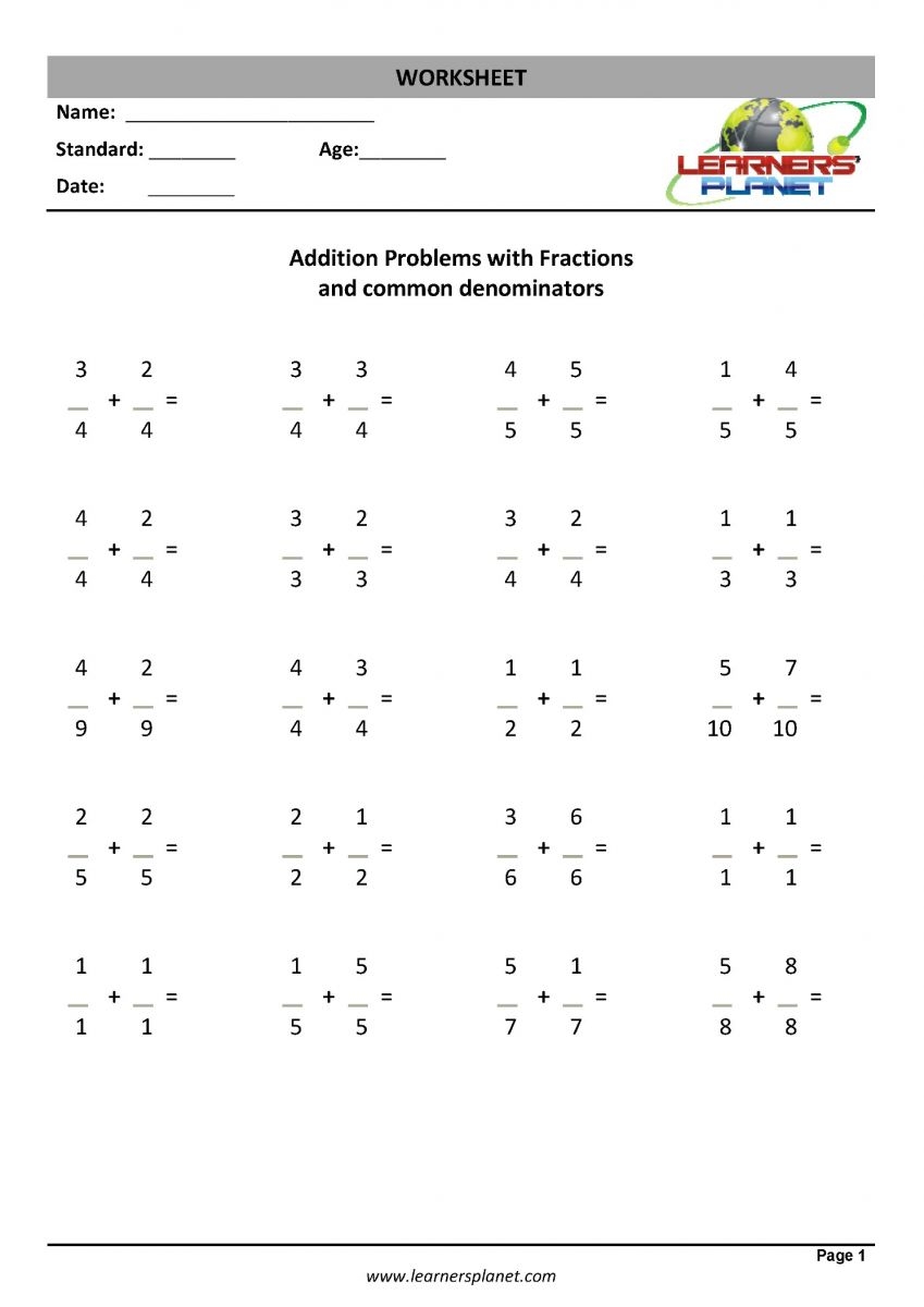 Worksheets For Fraction Addition Class 3 Math