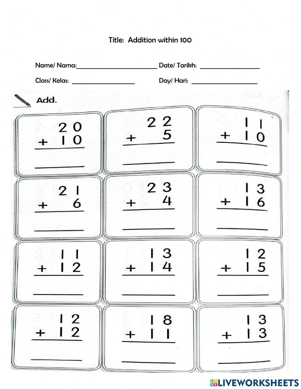100 Addition Problems Worksheets Printable Worksheets