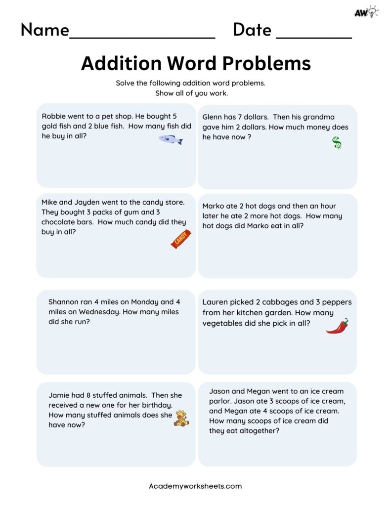 Addition Word Problems Worksheets WorksheetsGO