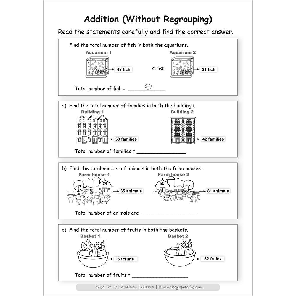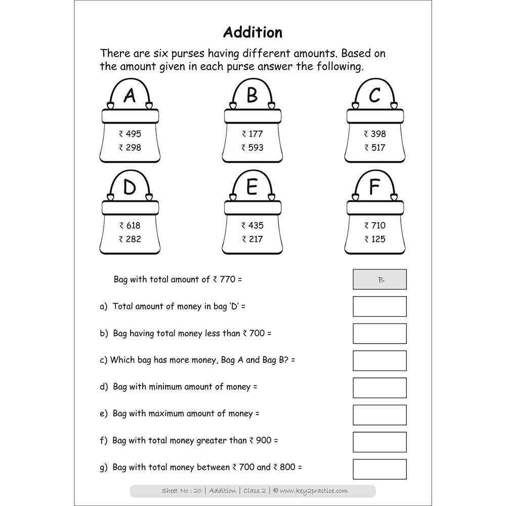 Class 2 Maths Addition Activity Based Worksheets Key2practice