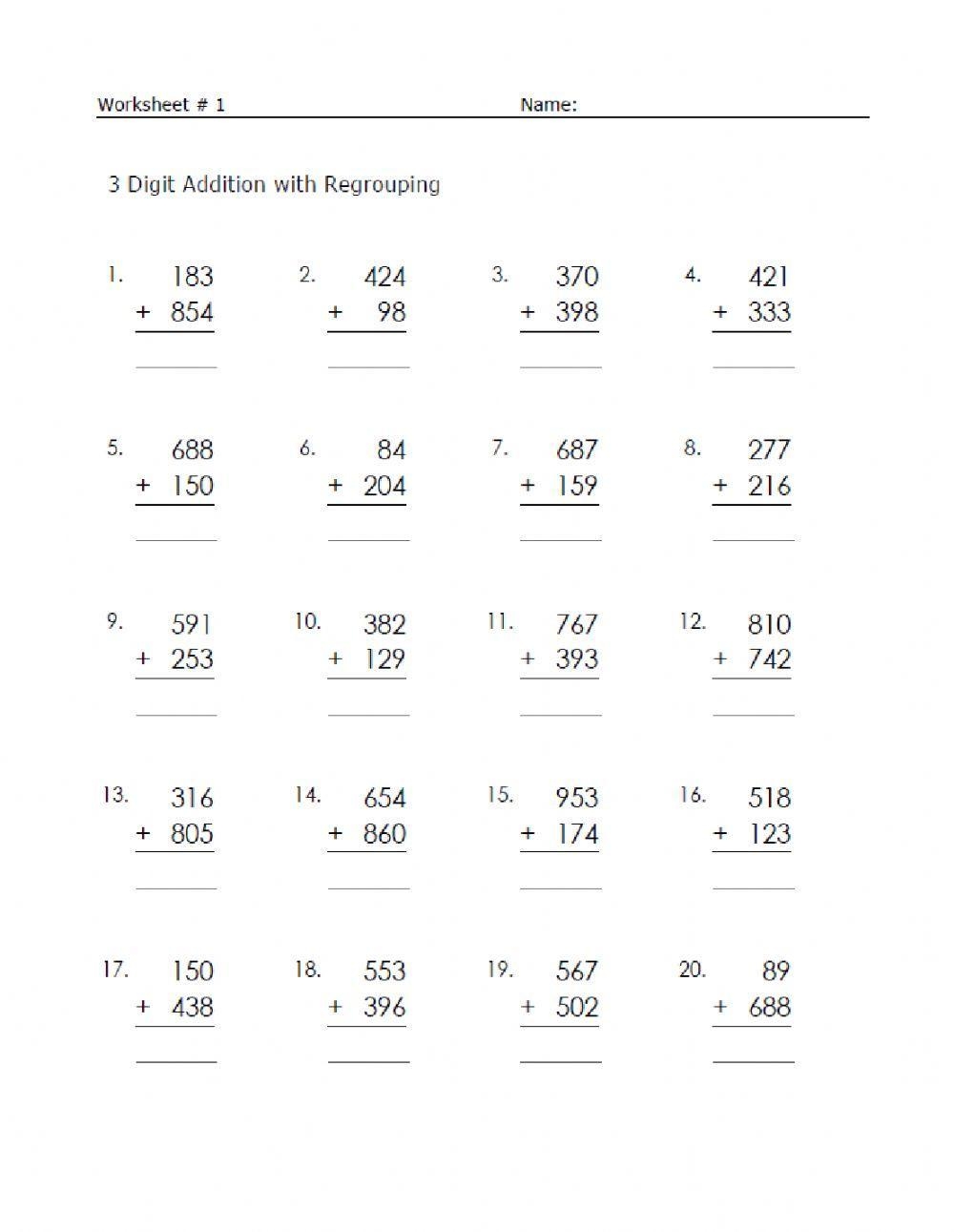 Addition Interactive Exercise For Class 2 Grade 3 Live Worksheets