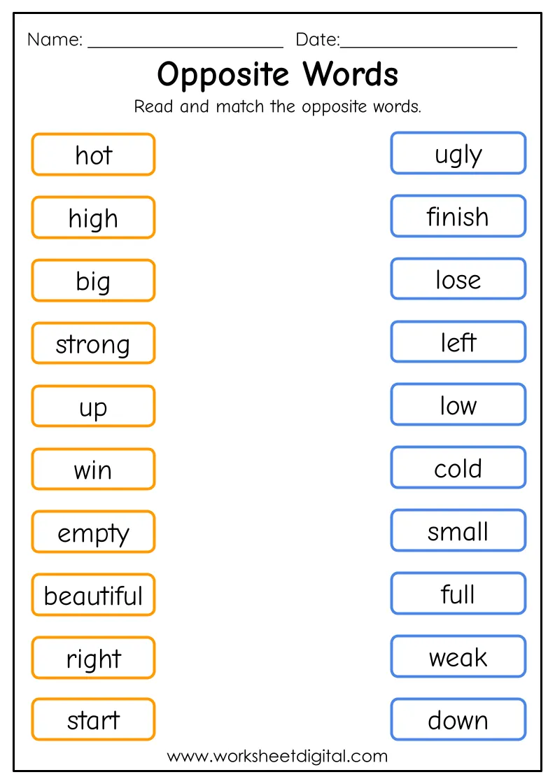 One common type of antonyms worksheet is the matching activity, where students match pairs of antonyms. This activity helps students learn to recognize words with opposite meanings and understand how they are used in context. It also reinforces the concept of antonyms through repetition and practice.