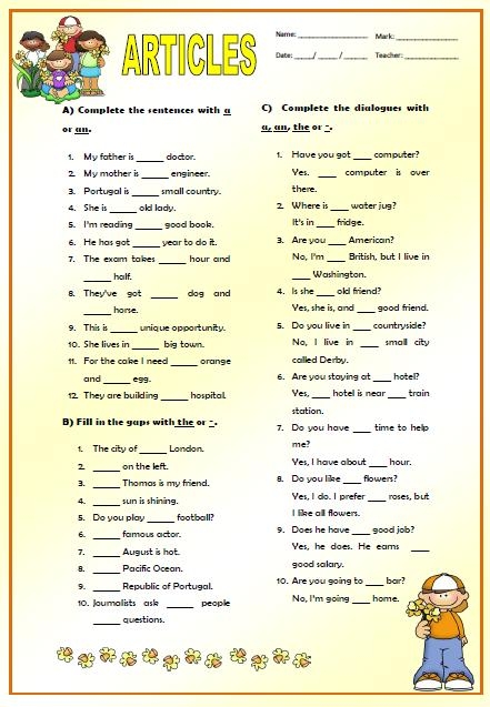 Articles Worksheet Your Home Teacher