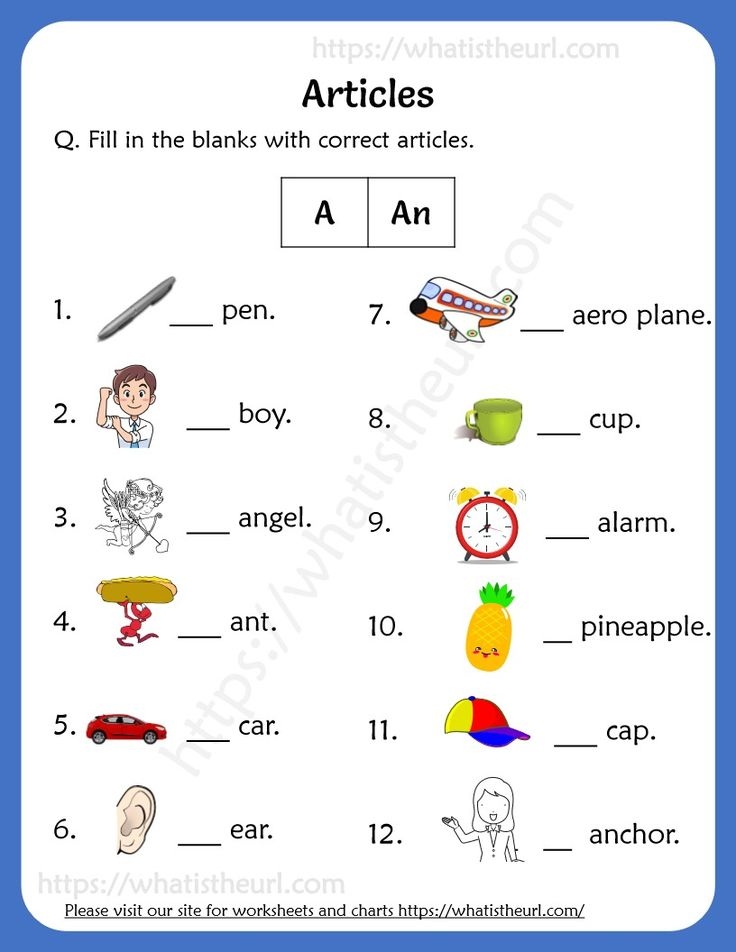 Worksheet On Articles With Answers Grade 1 English Worksheets For