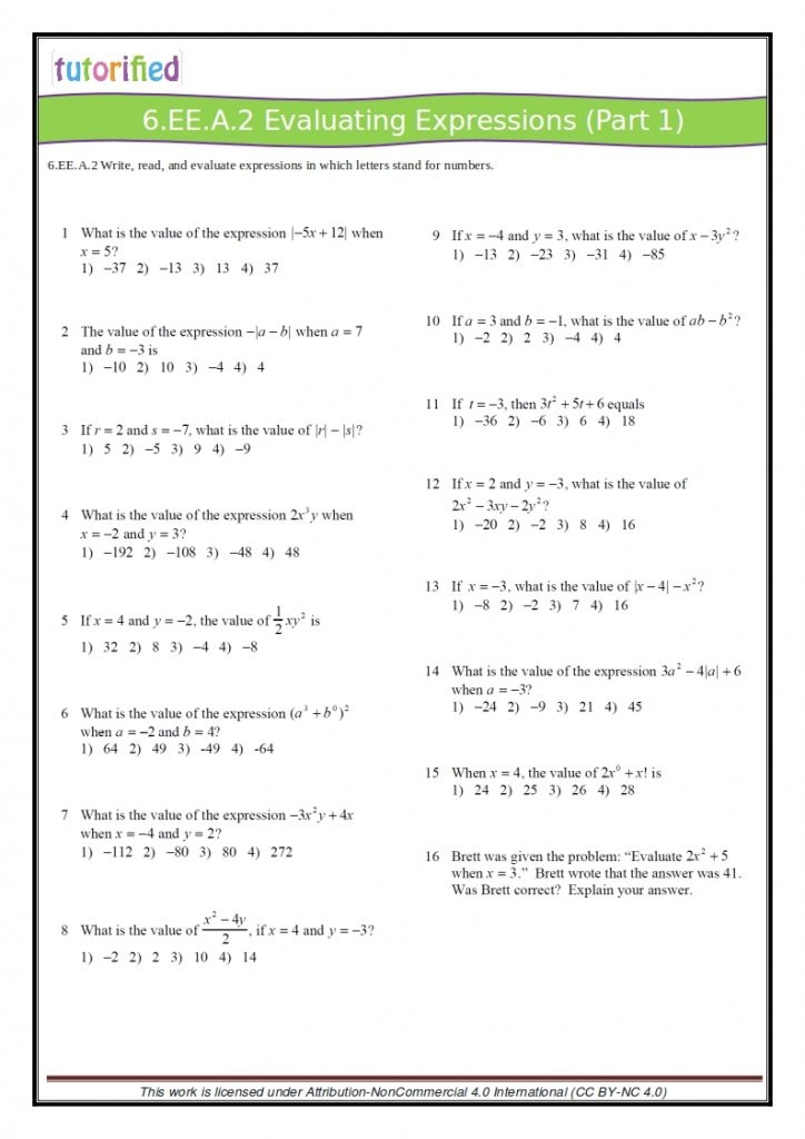 Common Core Math Worksheets Grade 6 Common Core Worksheets