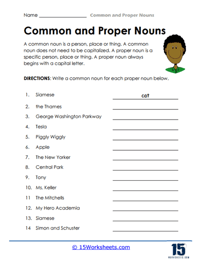 Common Noun Proper Noun Worksheet