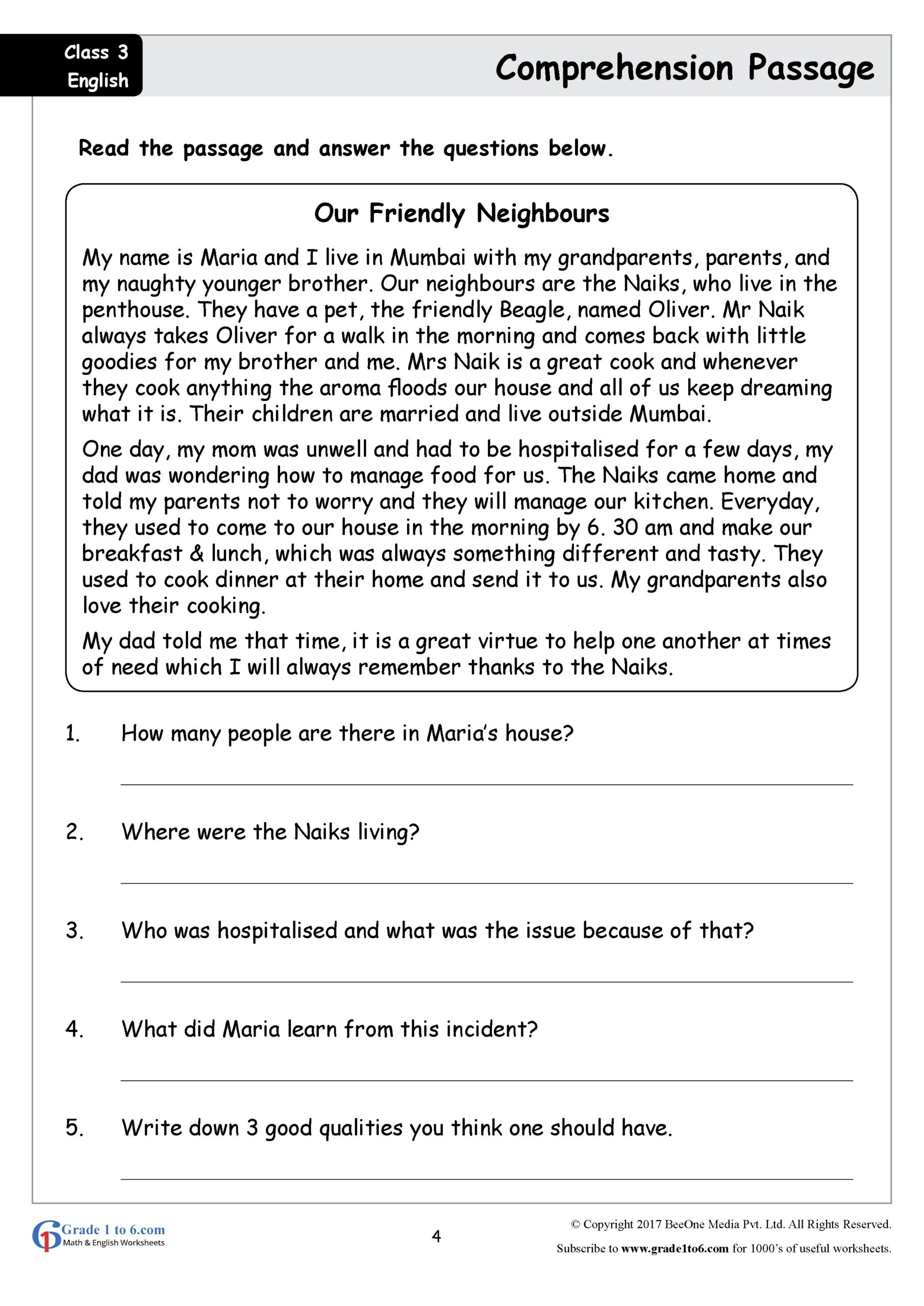 Comprehension Passages For Class 4 Worksheet Resume Examples Porn Sex
