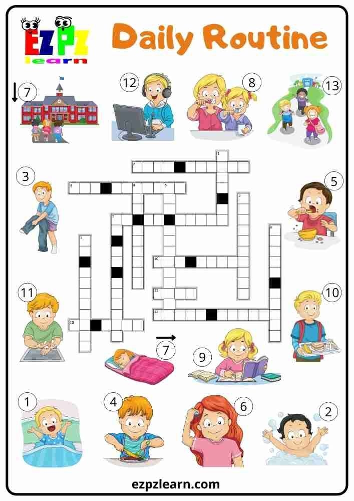 Free Printable English Crosswords Game Topic Daily Routine Worksheets Free Printable English Crosswords Game Topic Daily Routine Worksheets