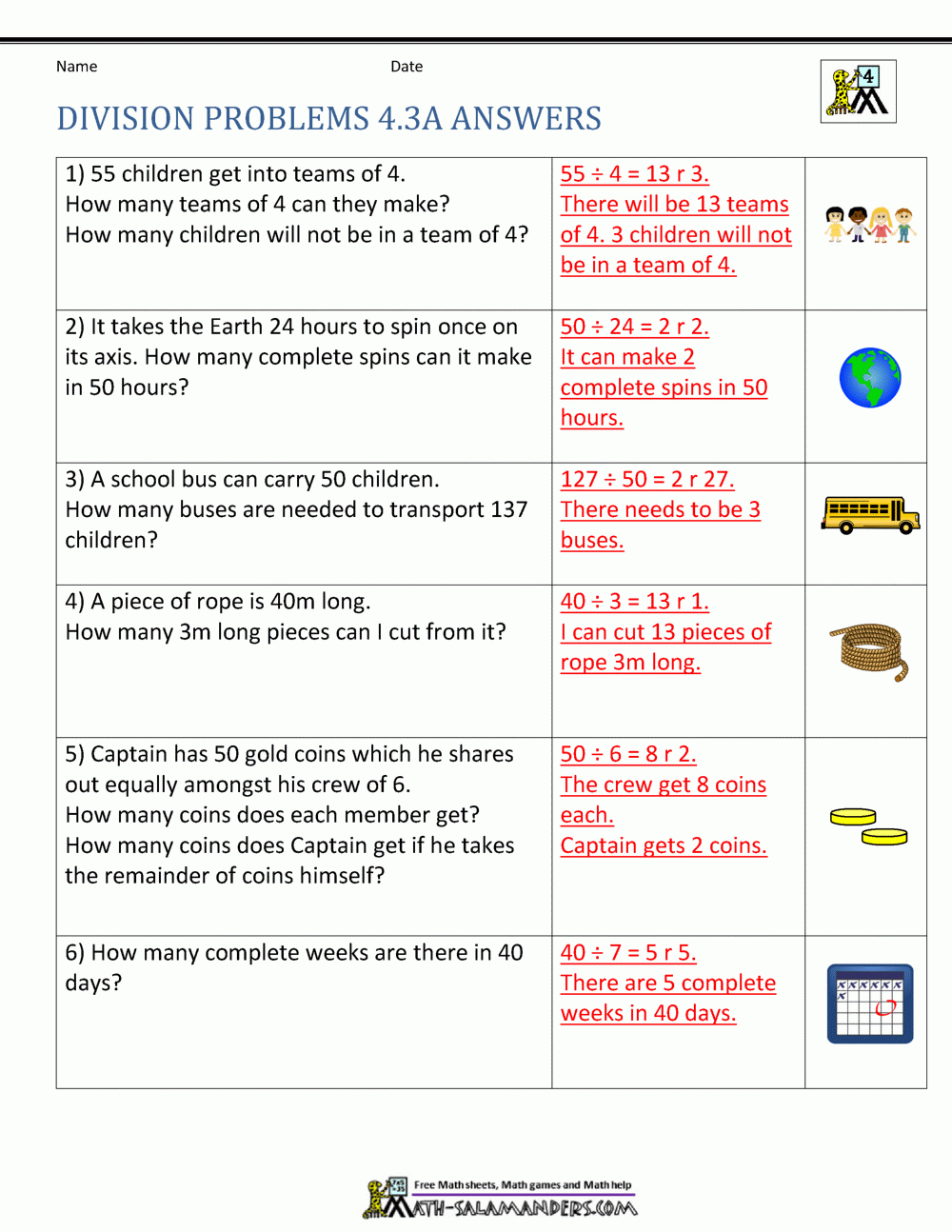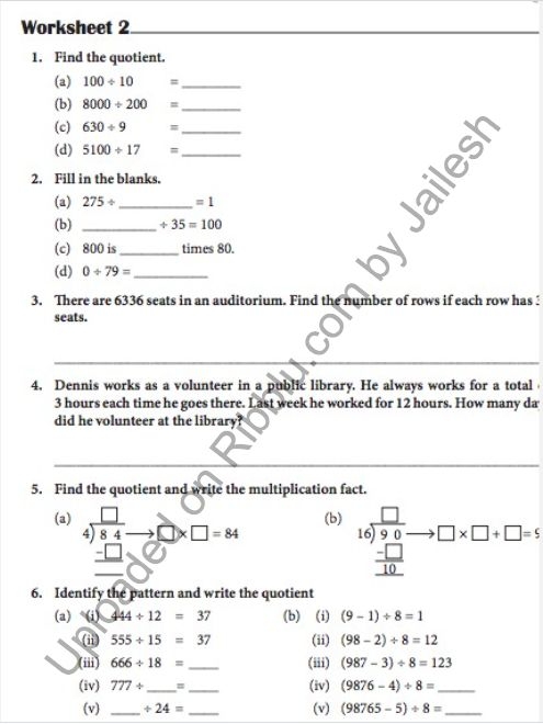 Division Worksheets For Class 4 MathsDivision Worksheets For Class 4 Maths