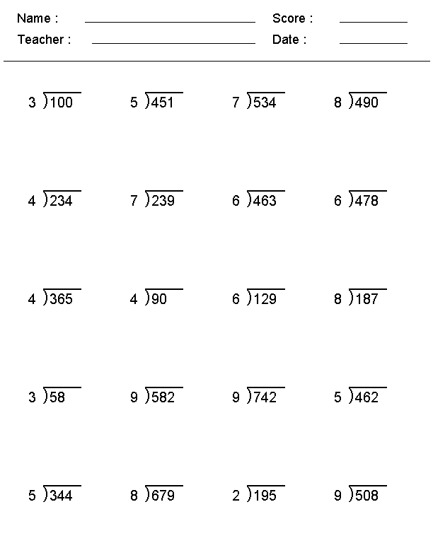 Division Worksheets For 4th Graders