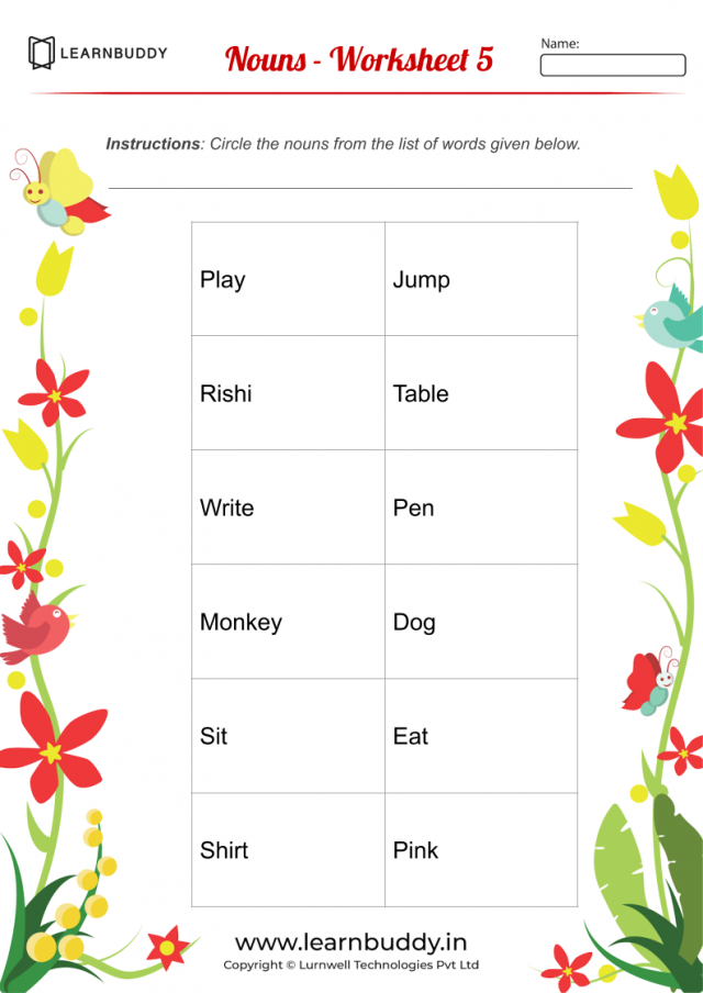 English Worksheets For Class 1 Nouns Verbs Pronouns Learnbuddy In