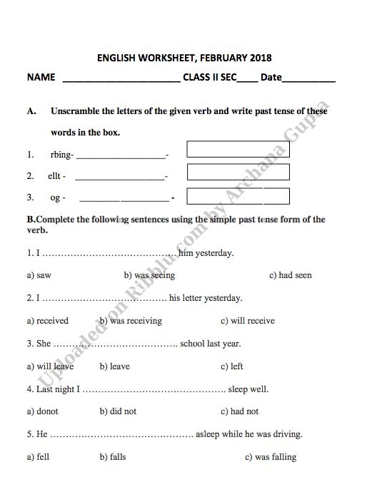 CBSE Class 2 English Worksheets English Grammar Worksheets English