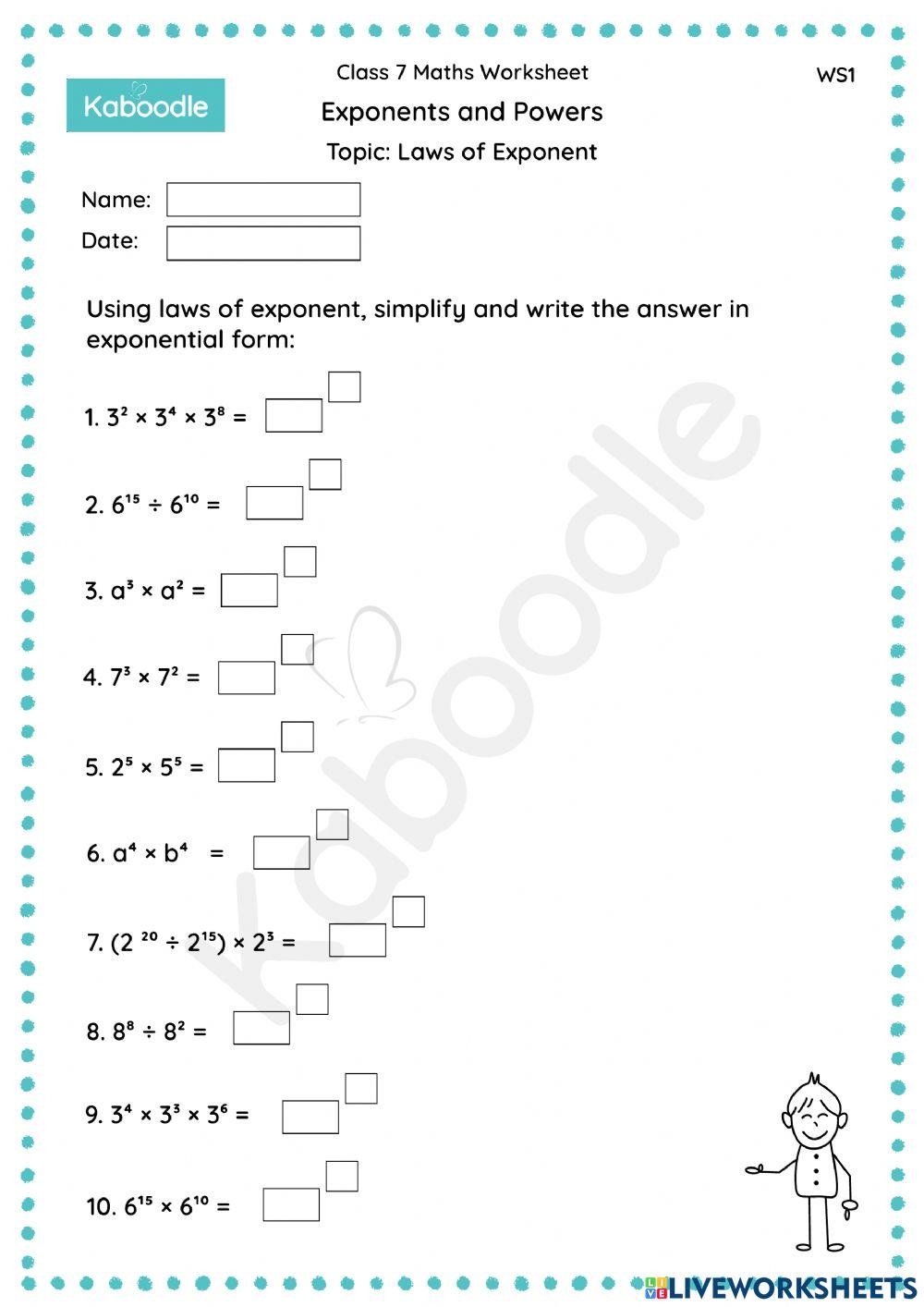Exponents Powers Laws Of Exponents Worksheet Live Worksheets