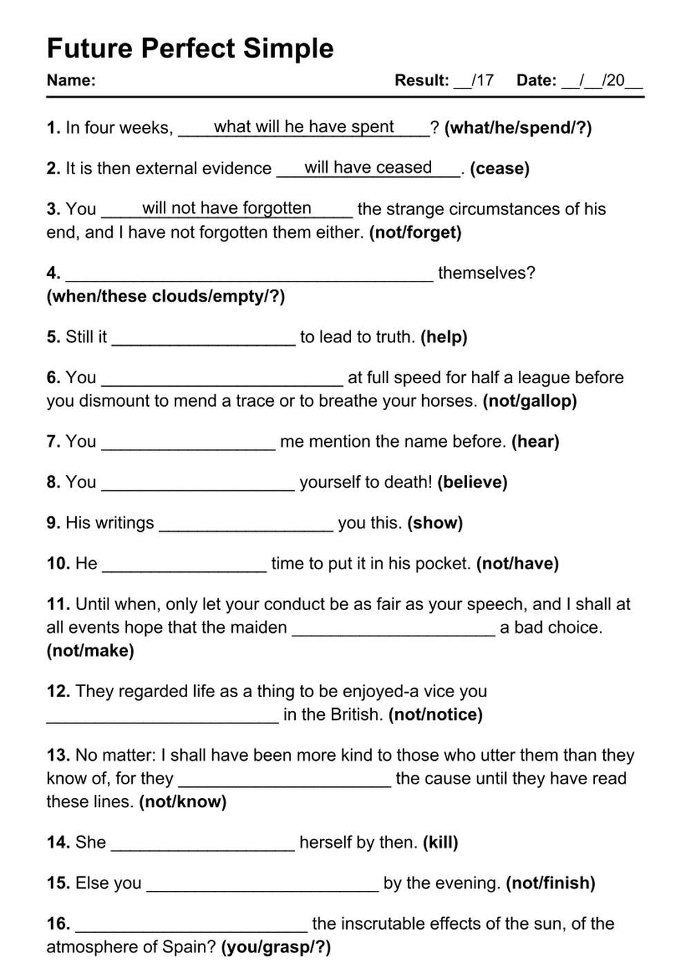 Future Perfect Tense Worksheet – Boost Learning at Home with Printable Worksheets.