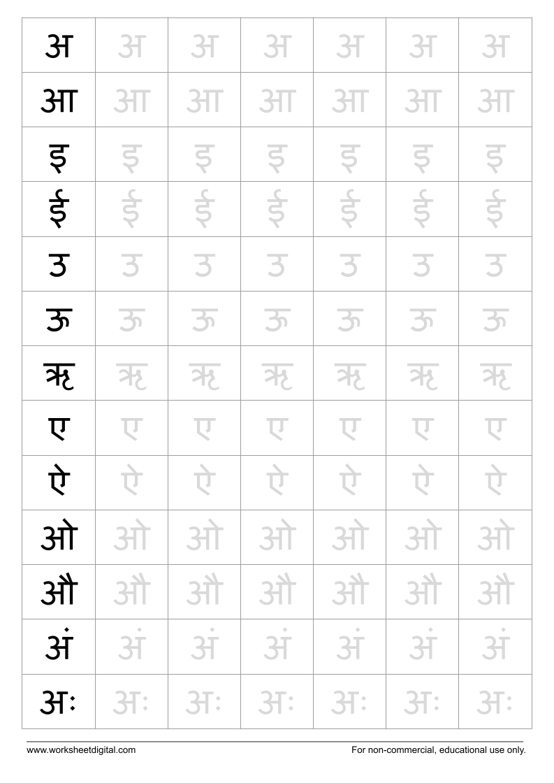 Hindi Vowels Tracing Worksheet Worksheet DigitalHindi Vowels Tracing Worksheet Worksheet Digital