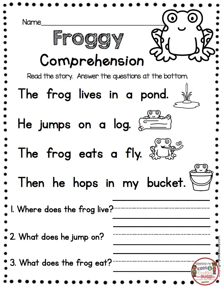 Reading Comprehension Worksheets Kindergarten Kindergarten