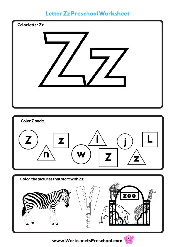 Free Letter Z Worksheets For Preschool Kindergarten Kids