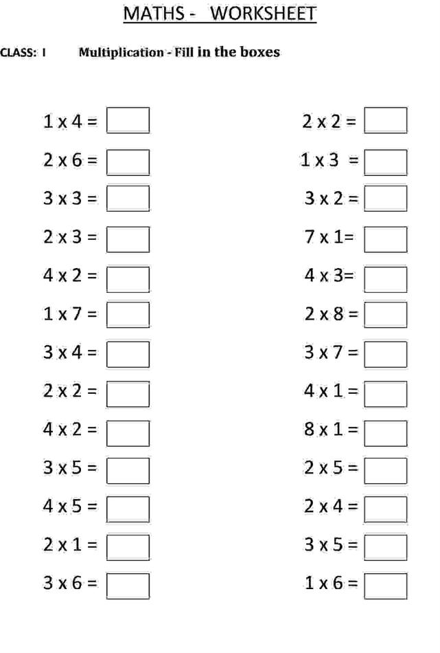 Multiplication Sum Fill In The Blanks Class 1 Maths Worksheet