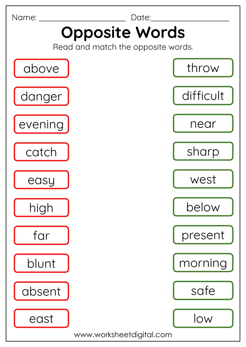 Opposite Words Worksheet are ready-to-print activities you can instantly download for use. They include puzzles and quizzes, educational games, and even coloring pages. Their flexible use makes them perfect for enriching lessons at home.