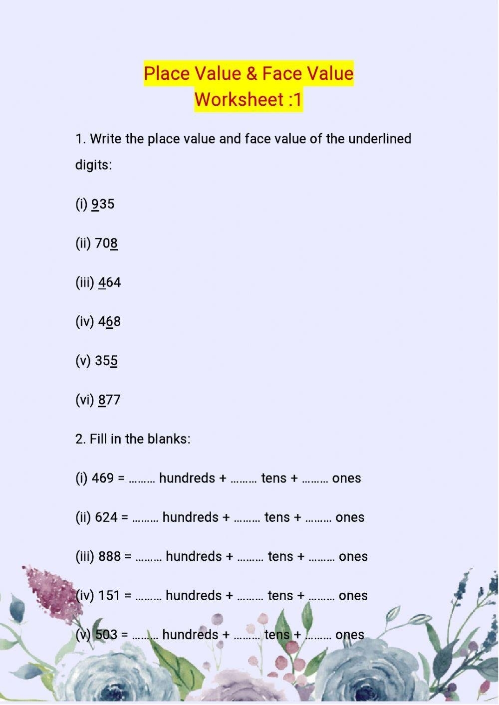 Place Value And Face Value Worksheets – Boost Learning at Home with Printable Worksheets.