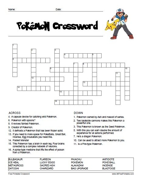 Pokemon Crossword Puzzle Printable
