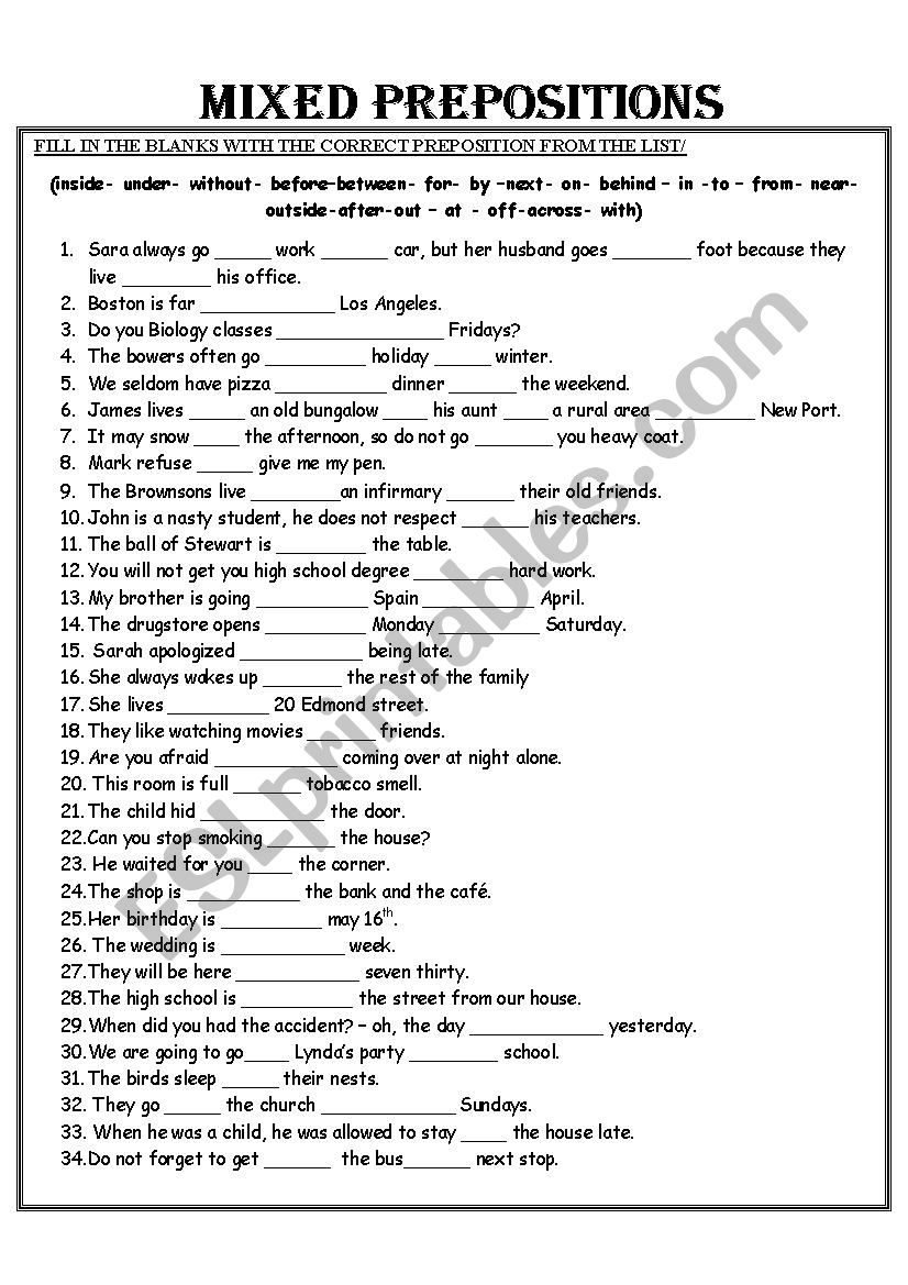MIXED PREPOSITIONS WORKSHEET ESL Worksheet By Alfred78 Worksheets MIXED PREPOSITIONS WORKSHEET ESL Worksheet By Alfred78 Worksheets